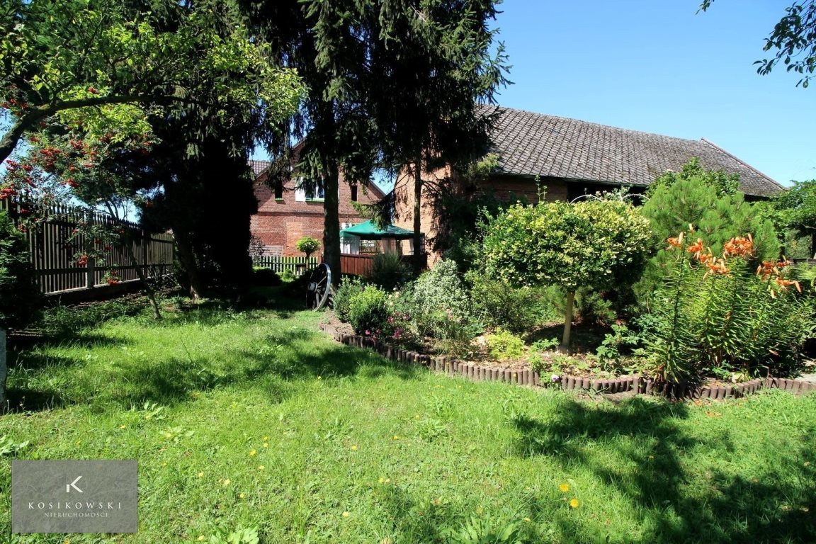 Część mieszkalna jest w zwartym ciągu z częścią gospodarczą, którą poprzednio właściciele użytkowali do hodowli koni. Stajnia z boksami, przygotowana do prowadzenia tego typu działalności. Nad tą częścią również rozciąga się strych, który można dowolnie zagospodarować. Całość budynku podpiwniczona. W jednym z pomieszczeń, znajduje się piec centralnego ogrzewania. Oprócz tego na posesji znajdują się inne budynki gospodarcze: stodoła, wiata na maszyny rolnicze, budynek gospodarczy z dwoma garażami, z czego jedna część aktualnie przeznaczona pod typowy warsztat z narzędziami. Jedno z pomieszczeń wykorzystane pod letnią kuchnię - co jest niezwykle wygodnym rozwiązaniem. Następnie z boku budynku mniejsze pomieszczenie, służące aktualnie jako magazyn środków ochrony roślin. Posesja bardzo zadbana i uporządkowana, co jest dużym ułatwieniem dla przyszłych właścicieli.