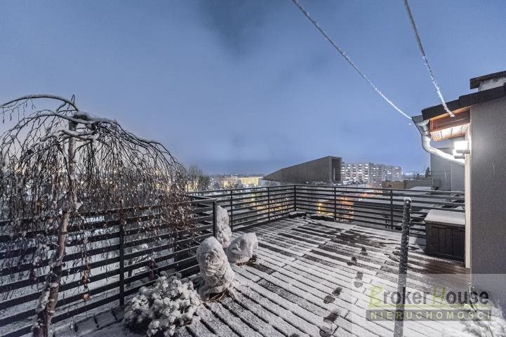 Mieszkanie posiada balkon na poziomie 0 i bardzo duży taras na poziomie 1 z panoramą na całe miasto.