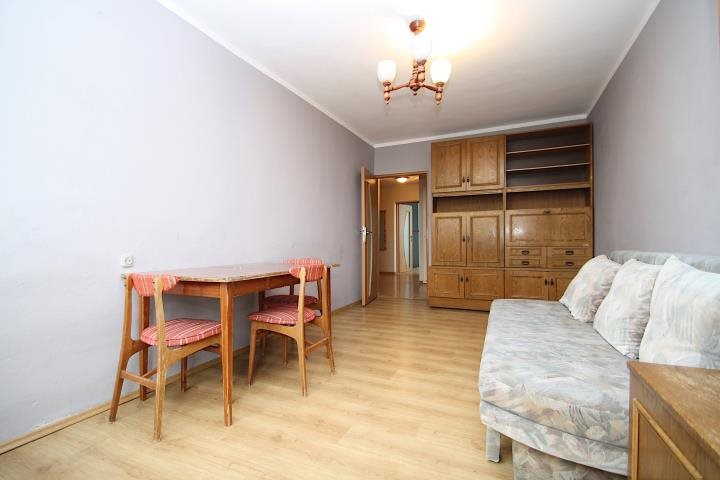 Mieszkanie o powierzchni 60 m2 znajduje się na trzecim piętrze wysokiego bloku.