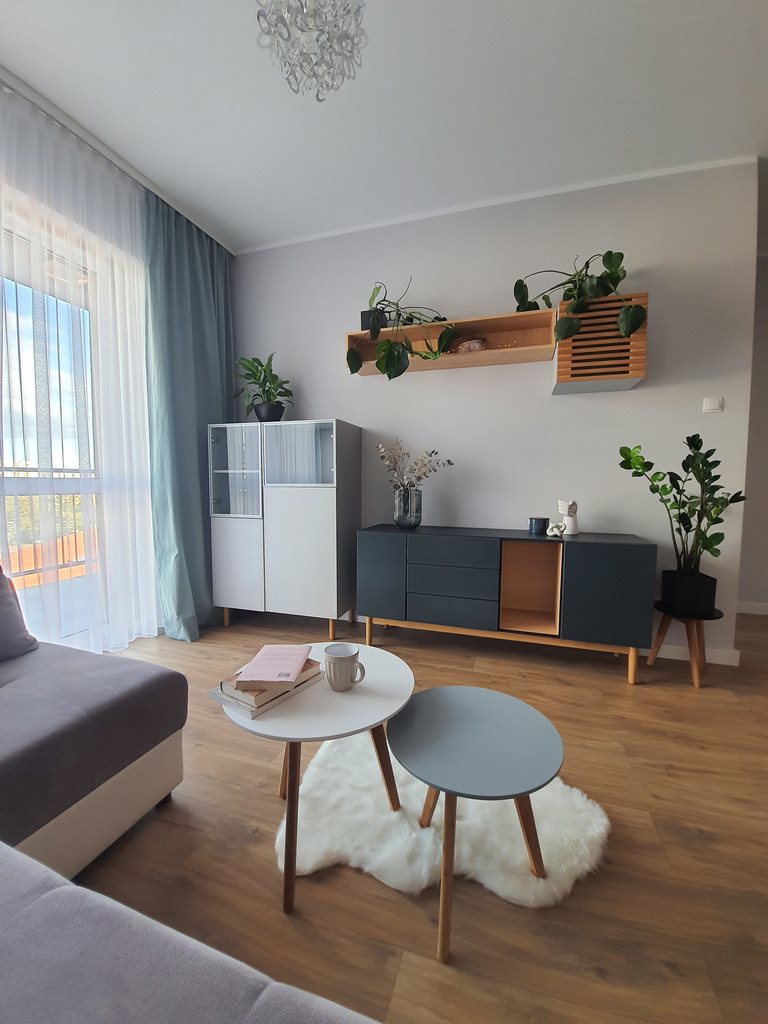 Mieszkanie jest w pełni umeblowane, kuchnia zabudowana, wyposażona w niezbędny sprzęt AGD.